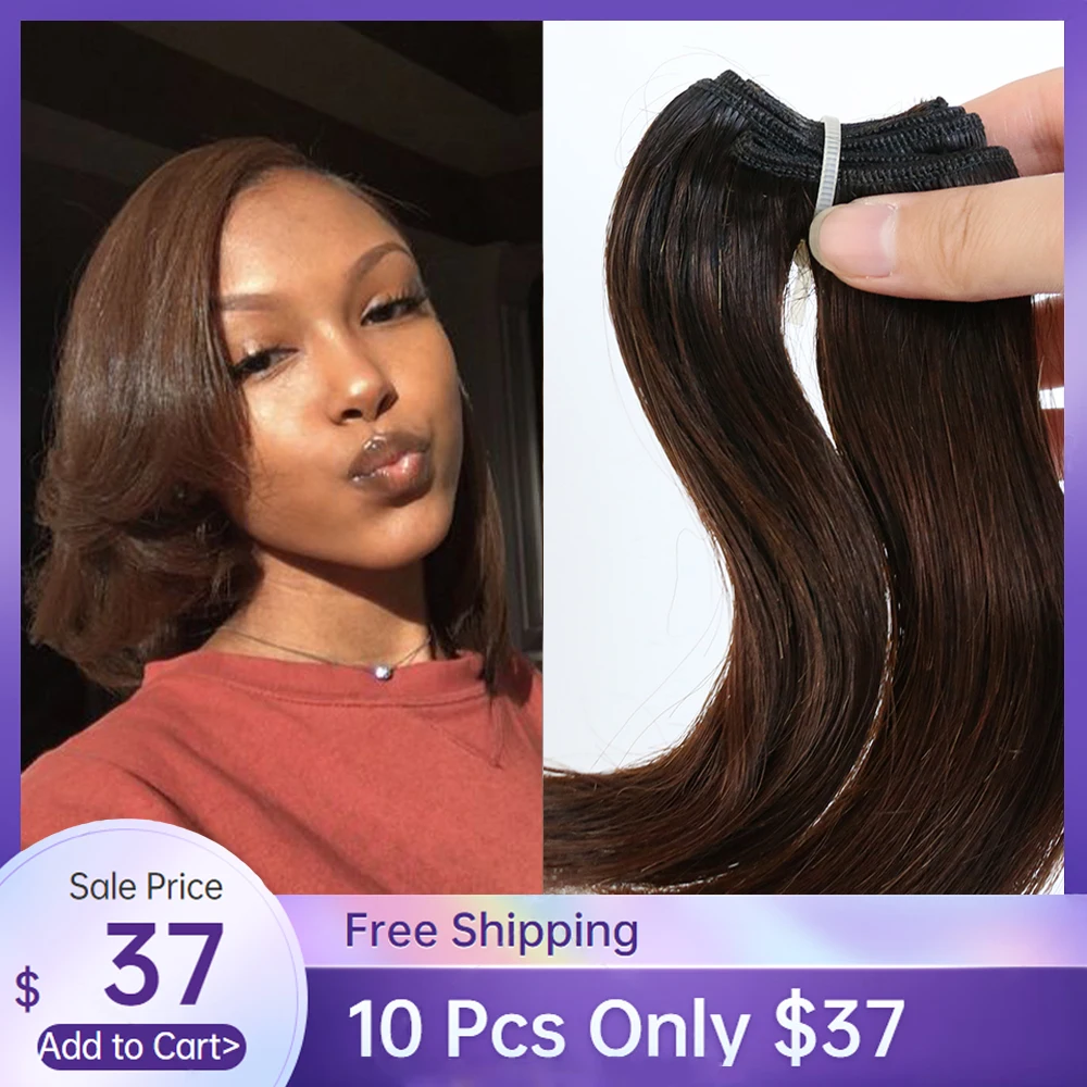 Name: Doble dibujado, cabello Funmi mechones 10 pulgadas 100% cabello humano ondulado corto pelo mechones de cabello Remy brasileño 25 g/Pcs 10 unids/lote